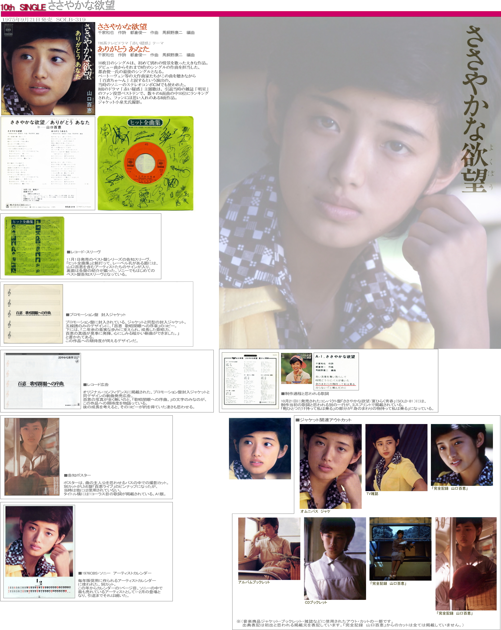 山口百恵 シングル・ディスコグラフィ ささやかな欲望/ありがとうあなた
