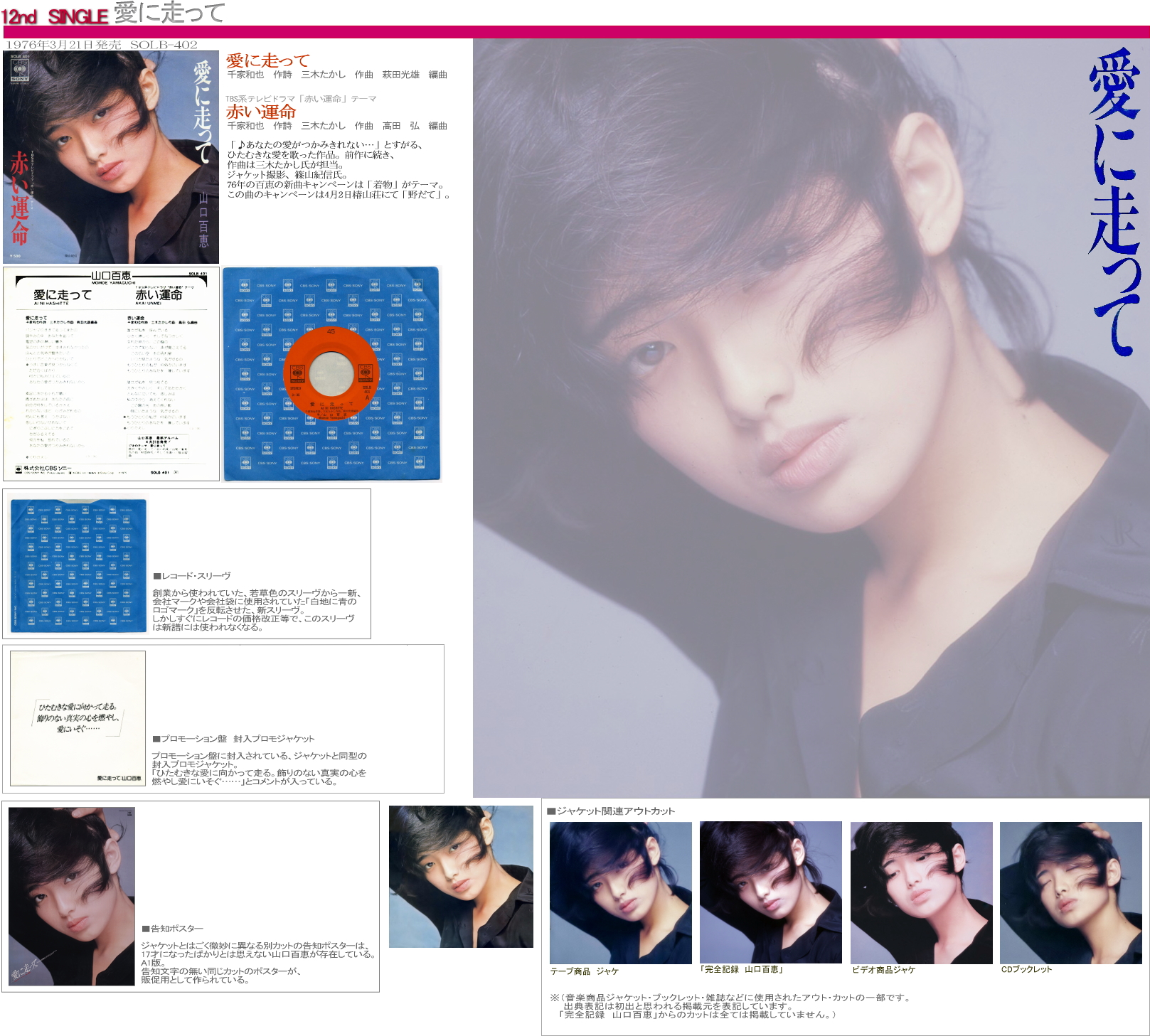 山口百恵 シングル・ディスコグラフィ 愛に走って/赤い運命