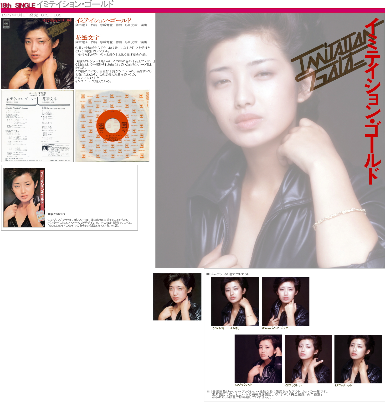 山口百恵 シングル・ディスコグラフィ イミテイション・ゴールド/花筆文字