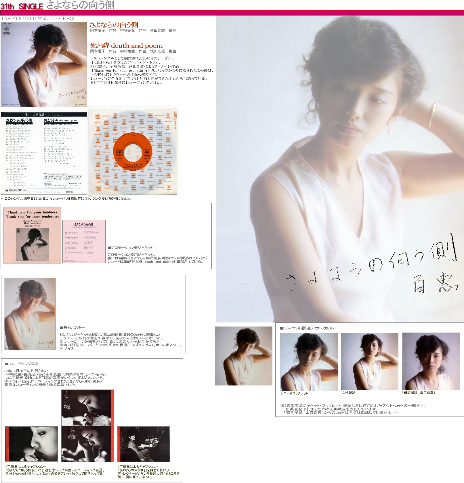 山口百恵 シングル・ディスコグラフィ さよならの向う側/死と詩 death and poem