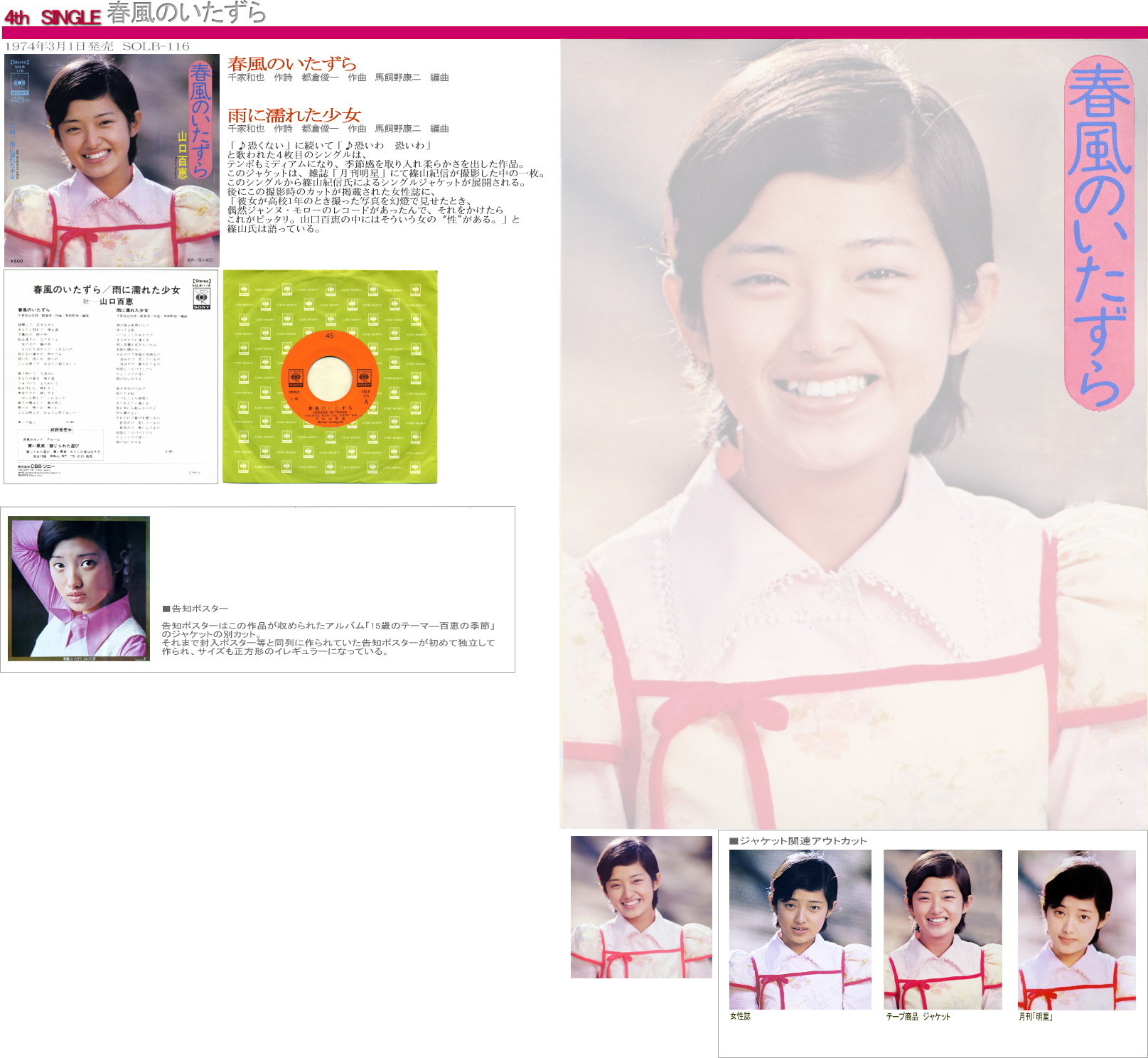山口百恵 シングル・ディスコグラフィ 春風のいたずら