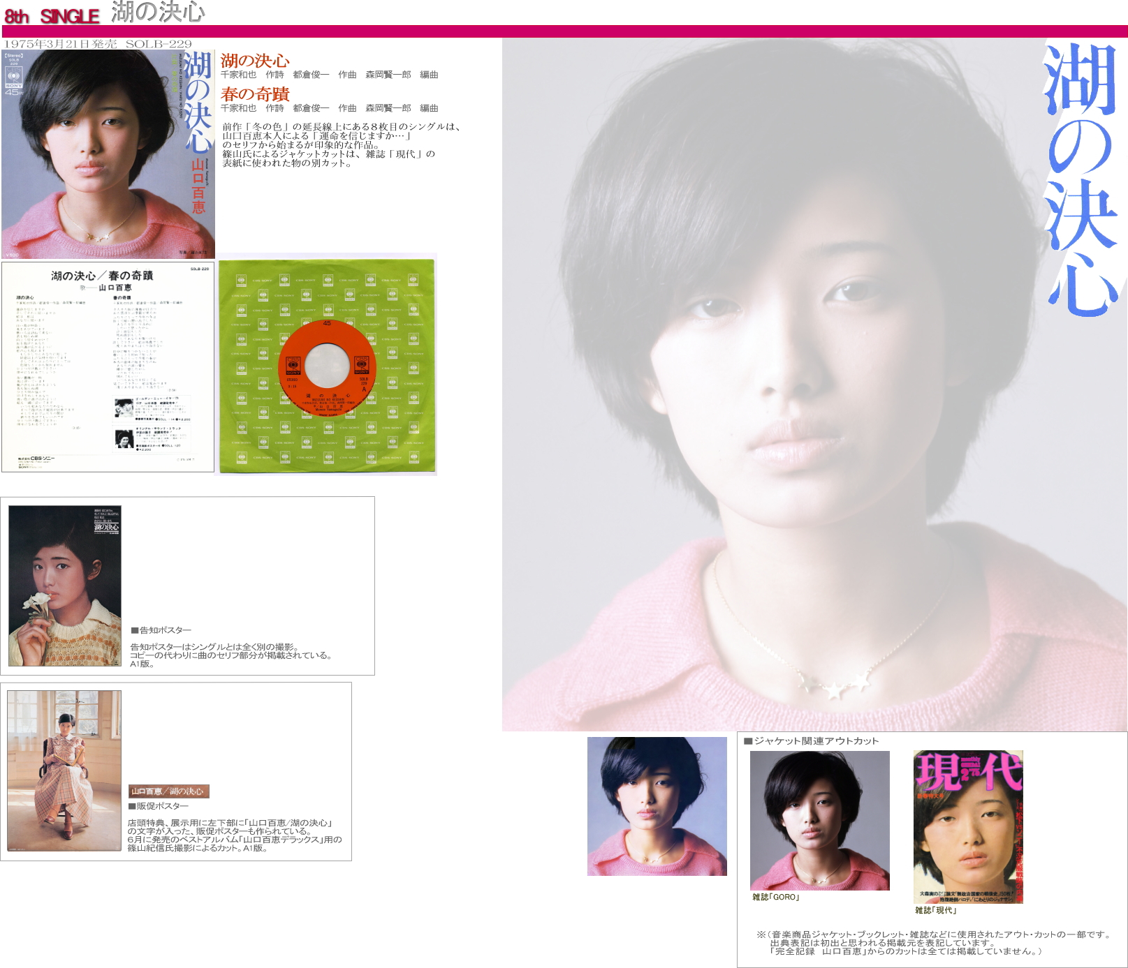 山口百恵 シングル・ディスコグラフィ 湖の決心/ 春の奇蹟