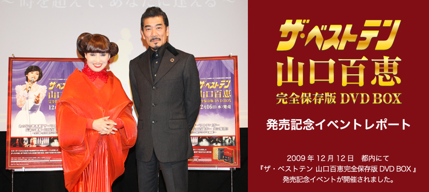 「ザ・ベストテン」30周年・ホリプロ創立50周年記念 ザ・ベストテン 山口百恵 完全保存版 DVD-BOX 発売日 2009年12月16日(水) TCED-689 ¥24,990(税込) 発売元 TBS 販売元 TCエンタテインメント <製品仕様> 分数 本編:約420分(予定)+映像特典 リージョンナンバー 2(NTSC・日本国内向け) 音声 モノラル 画面サイズ 4:3 字幕 日本語(歌詞のみ) 片面1層 DVD-5枚組 販売サイト TBS Sony Music Shop Amazon セブンアンドワイ TBS Shopのみ予約オリジナル特典があります! ![]() 購入者特典(抽選)が決定! 購入者限定キャンペーン開催決定! 「ザ・ベストテン 山口百恵 完全保存版」発売記念プレゼントキャンペーン DVD-BOXに封入されている“応募券”を送ると、抽選で122名様に 記念品(非売品)が当たります。 初回製造分限定、2010年1月29日(金)までの期間限定企画ですので、是非ともお見逃しなく! <抽選プレゼント> シリアルナンバー付き 特製フォトフレーム (「ザ・ベストテン」出演写真デザイン 限定カード入り) 実施期間:2009年12月16日(水)〜2010年1月29日(金) 記念品発送:2010年2月下旬頃 ※当選者の発表:記念品の発送のみ。 |